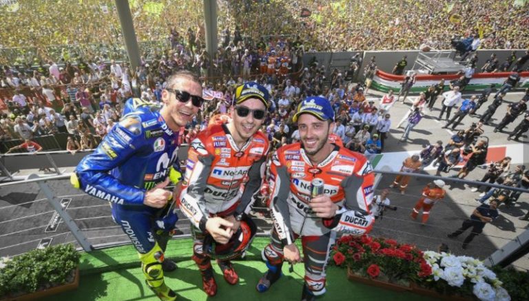 Fábrica italiana tem dia de sonho colocando seus dois pilotos no pódio em corrida de casa; Valentino Rossi é 3º