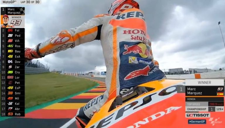 E lá se vão oito vitórias seguidas para Marc Márquez em Sachsenring, ele que lidera o campeonato quando chegamos a metade da temporada.