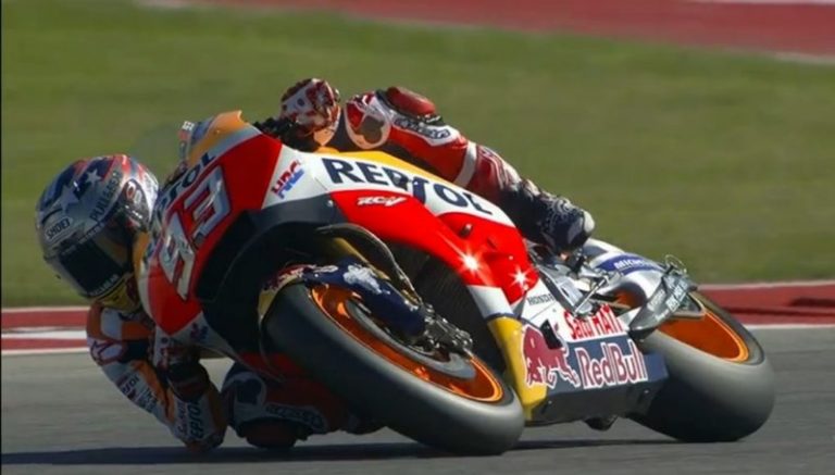 Na curva sete Márquez ultrapassa Pedrosa e passava a liderar a prova, com Rossi a cerca de um segundo, mais atrás.