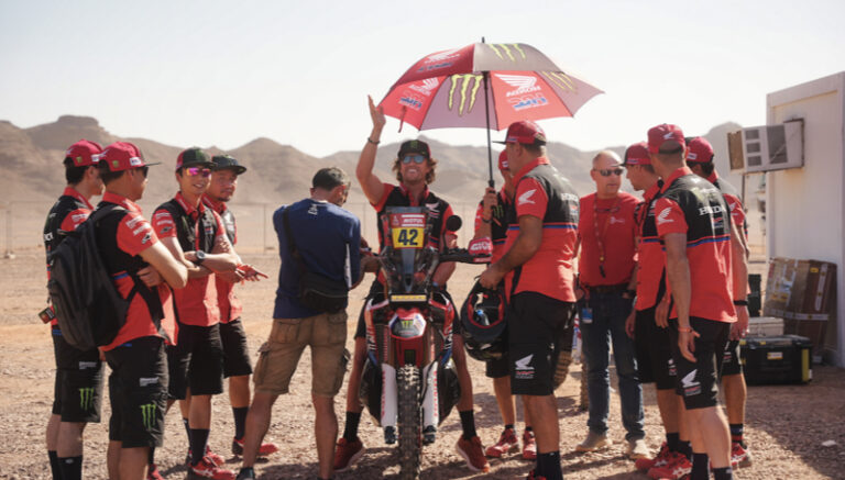A Monster Energy Honda cumpriu nesta quinta-feira (4/1) os últimos preparativos para o início do Rally Dakar 2024, no enorme acampamento da prova em Al Ula, na Arábia Saudita. Após shakedown positivo com as novas motocicletas Honda CRF 450 RALLY, na última terça-feira (2/1), a equipe teve como foco as verificações técnicas e administrativas, realizadas com sucesso.