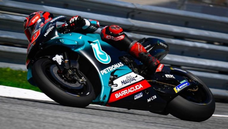 À frente, Quartararo na liderança com Rossi e Viñales a disputar os lugares seguintes…