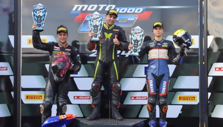 O calor de Goiânia, palco da primeira etapa do MOTO1000GP, só não foi mais forte que as disputas do sábado (27), dia em que abriu oficialmente o calendário de 2024. Na categoria GP600, as disputas também foram intensas. Apesar de largar na ponta, Gustavo Silveira não teve vida fácil e viu Pedro Valiente, da equipe PRT, ficar em seu encalço a prova toda, para garantir o segundo posto do dia. Eduardo Burr fechou o pódio garantindo o terceiro lugar para o time da Cesar Barros Racing.