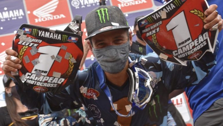 O 211 da Yamaha Racing, Paulo Alberto, levantou dos troféus na tarde de hoje (29), em Apiaí. Após seis etapas ficando entre os primeiros, o português se consagrou campeão brasileiro de motocross 2020 nas categorias MX1 e ELITE MX. Tudo isso na pista do Motódromo da Fepasa, já elogiada por ele.