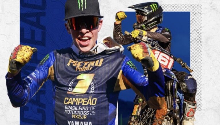 O Campeonato Brasileiro de Motocross/MX1GP Brasil viveu um momento decisivo neste sábado (30), em Rio Verde, Goiás. A oitava e penúltima etapa da temporada consagrou o jovem Pietro Piroli, piloto da Yamaha Monster Energy Geração, como campeão brasileiro da categoria MX2JR com uma rodada de antecipação.