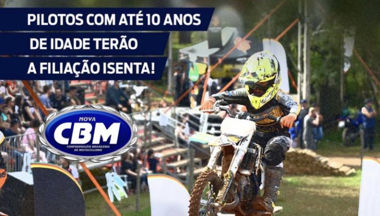 A partir desta semana, os pilotos com até 10 anos de idade estão isentos da taxa de filiação para qualquer modalidade esportiva regulamentada pela Confederação Brasileira de Motociclismo (CBM). Essa é mais uma novidade que a CBM traz este ano.