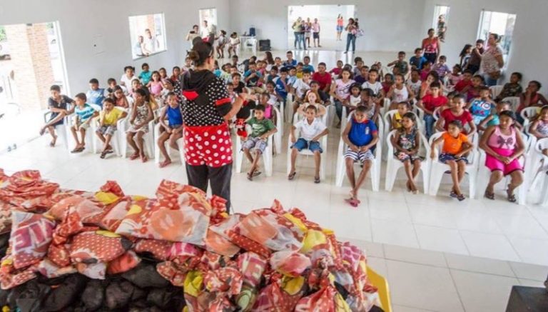 Em 2017, uma linda ação foi realizada com crianças da rede pública de ensino e, este ano, foi selecionada a Escola Municipal Cantinho do Céu. São 100 crianças com idades entre 5 e 10 anos que assistirão ao Teatrinho da Turma do Tupício e participarão ativamente das histórias, já que fantoches foram feitos especialmente para eles, pela Piffer e Cia, parceira do projeto e responsável por todos os enfeites utilizados nas ações. Além dos fantoches eles colocarão máscaras e outros materiais que darão cor, alegria e muita emoção!