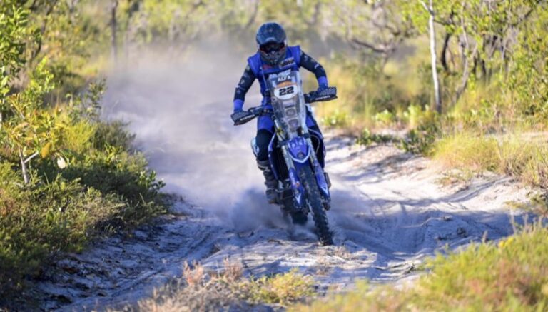 É muito arenoso, bem puxado e é desgastante para o equipamento, explica Adrien Metge, competidor da Yamaha WR 450 F, Yamaha IMS Rally Team, competidor de moto da categoria MT1 que venceu a etapa e lidera na geral.