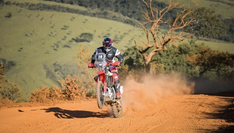 Suspensão, motor, freio… O conjunto tem que ser bem resistente e estar preparado para encarar obstáculos de terreno bem severos, pois teremos de tudo: pedras, trechos de trial, subidas e descidas de serra, setores sinuosos e, ainda, mudanças de terreno entre chão batido e arenoso, preveniu Bentivoglio.