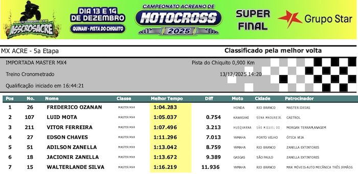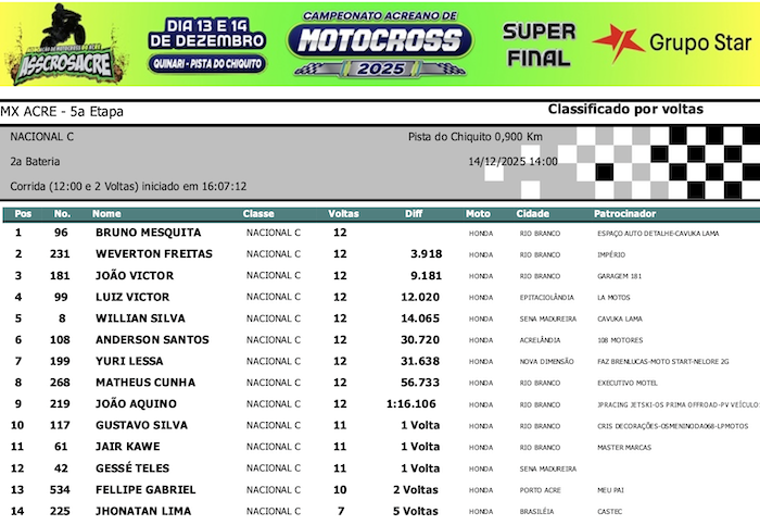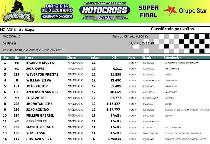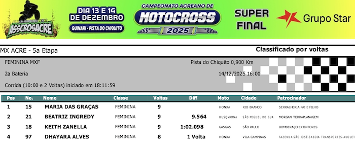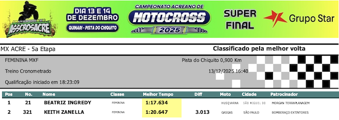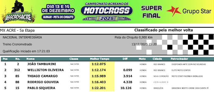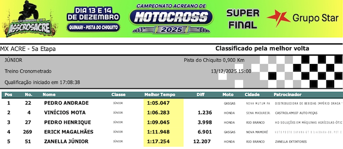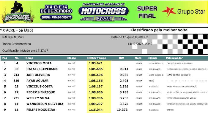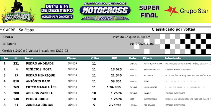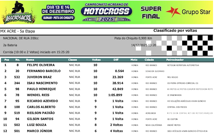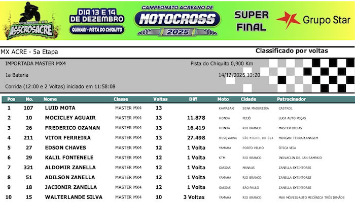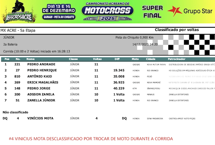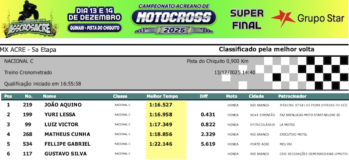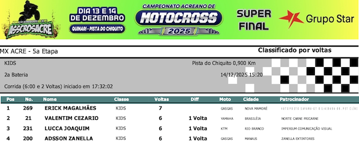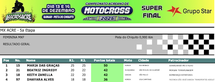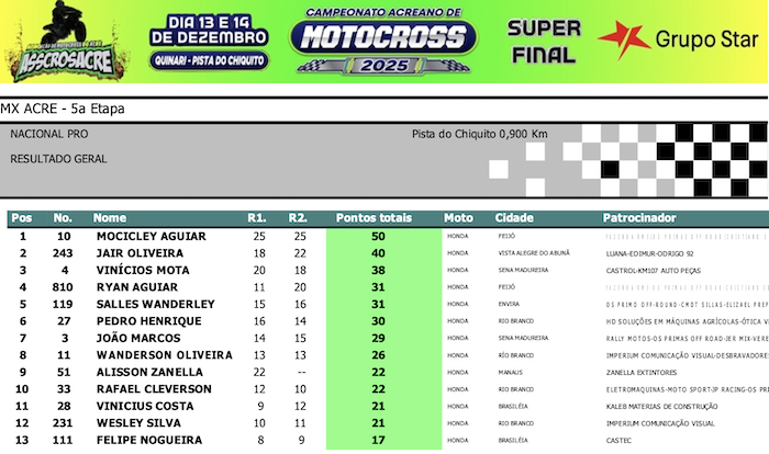 RESULTADOS: ACREANO DE MOTOCROSS – 5ª Etapa – Senador Guiomard
