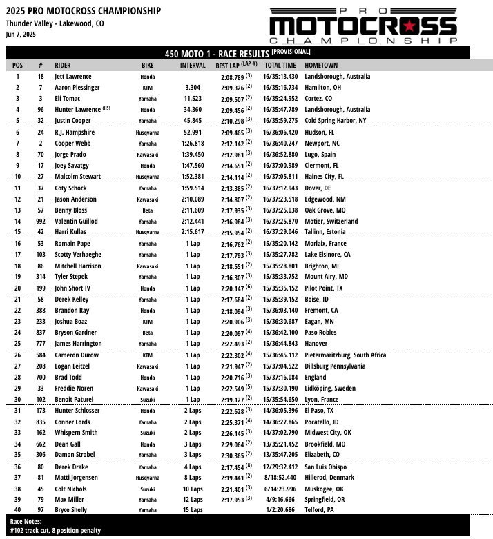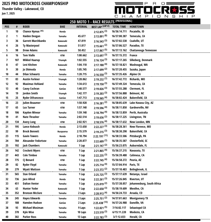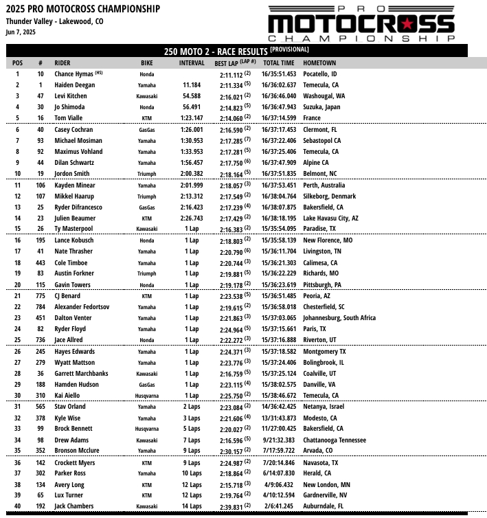 RESULTADOS: AMA MOTOCROSS – 3ª Etapa – Thunder Valley