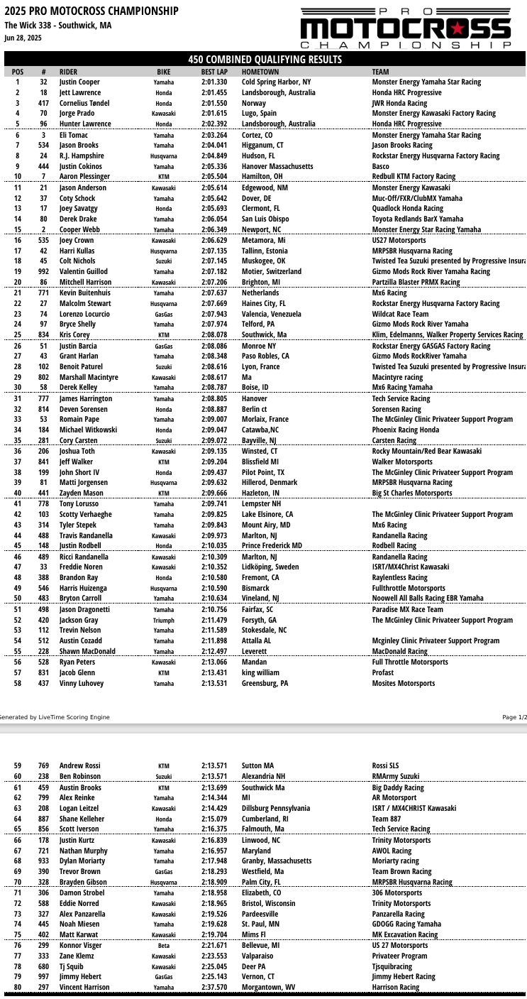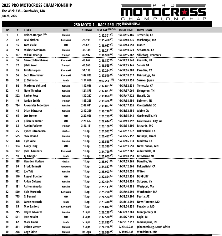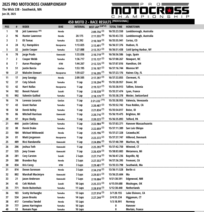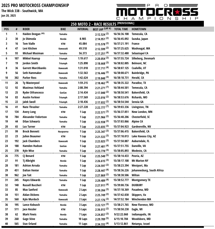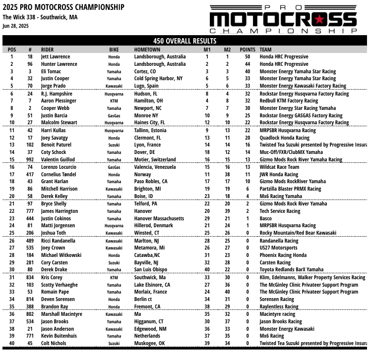 RESULTADOS: AMA MOTOCROSS – 5ª Etapa – Southwick
