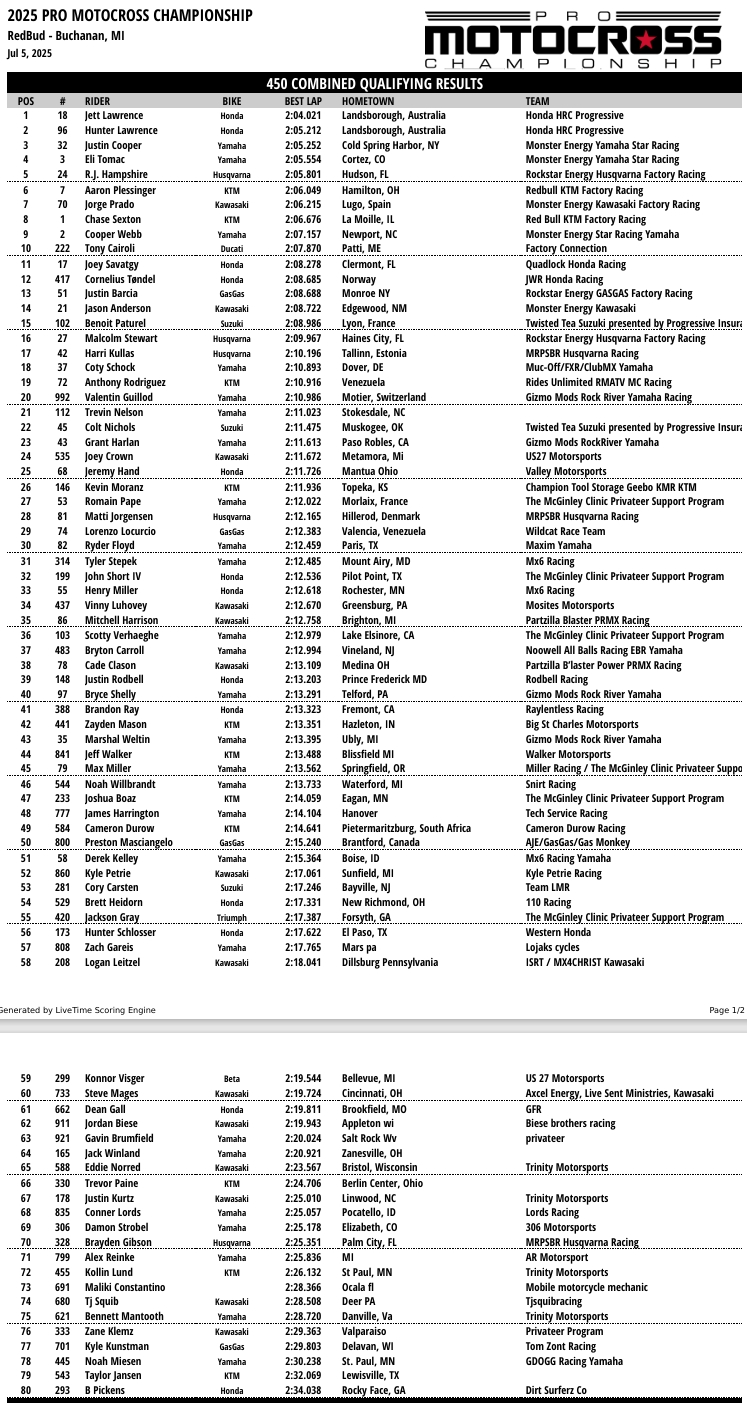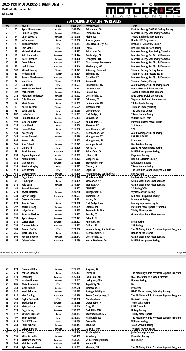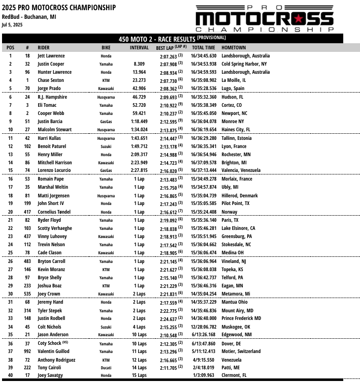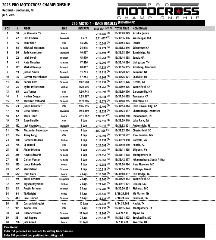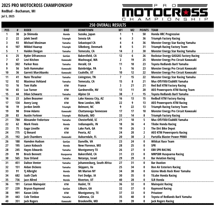 RESULTADOS: AMA MOTOCROSS – 6ª Etapa – RedBud