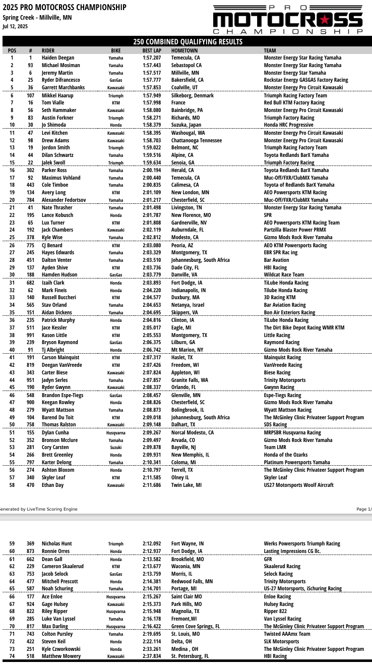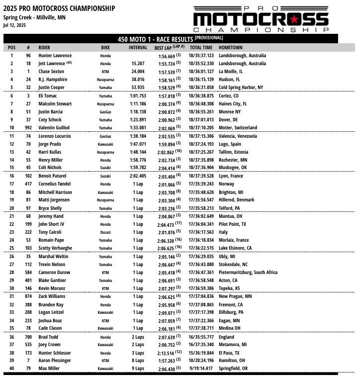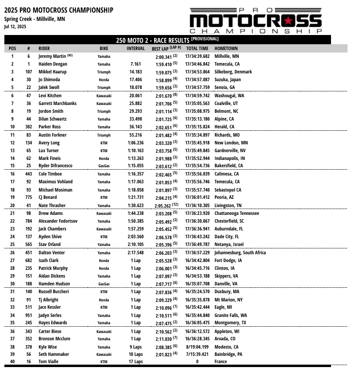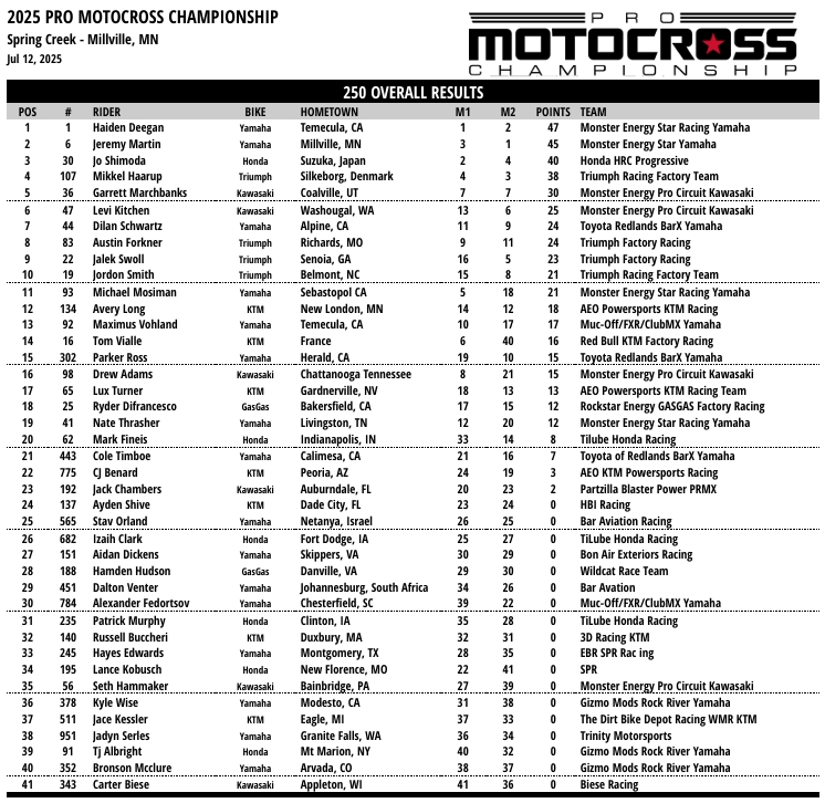 RESULTADOS: AMA MOTOCROSS – 7ª Etapa – Spring Creek