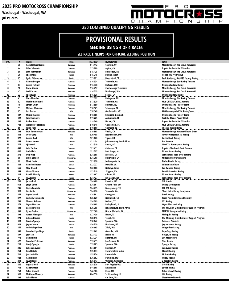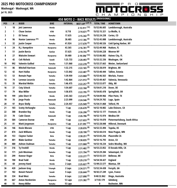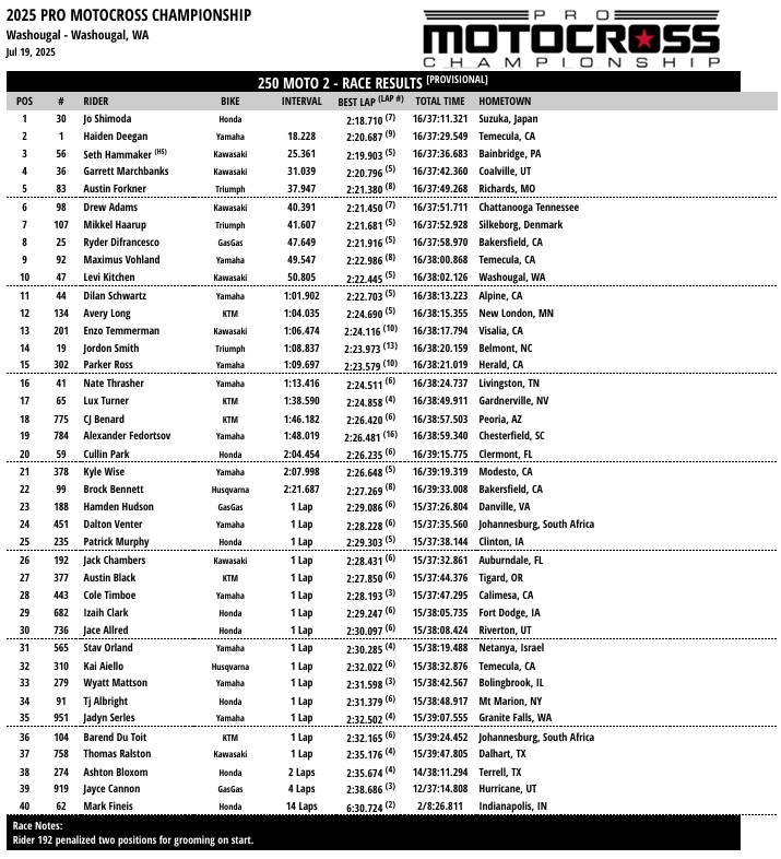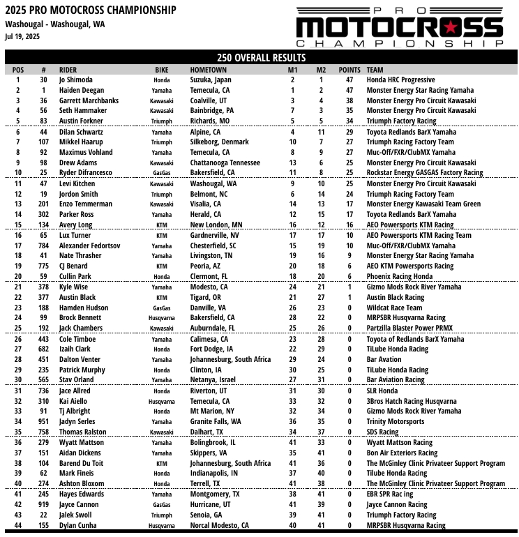 RESULTADOS: AMA MOTOCROSS – 8ª Etapa – Washougal