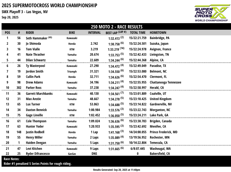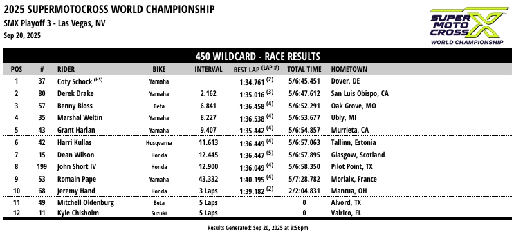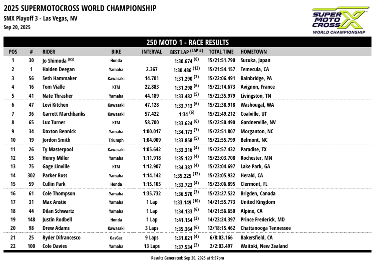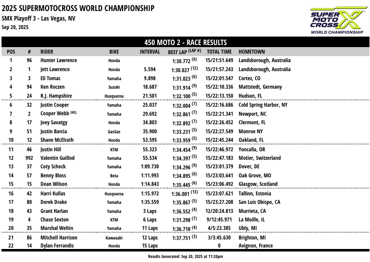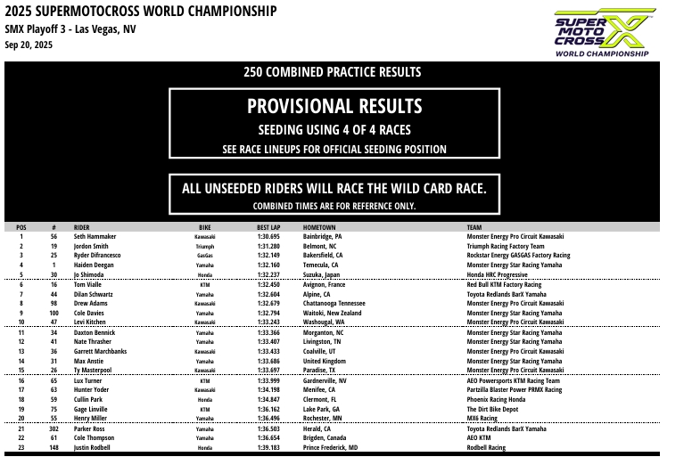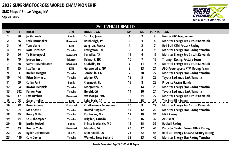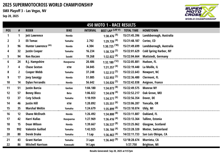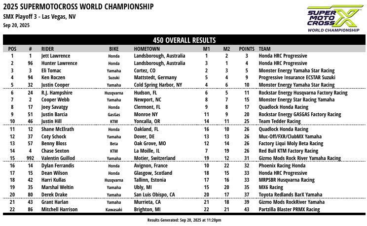 RESULTADOS: AMA SUPER MOTOCROSS – 3ª Etapa – Las Vegas, NV