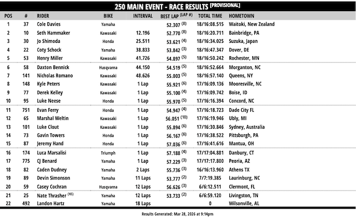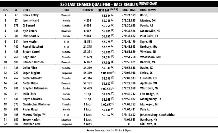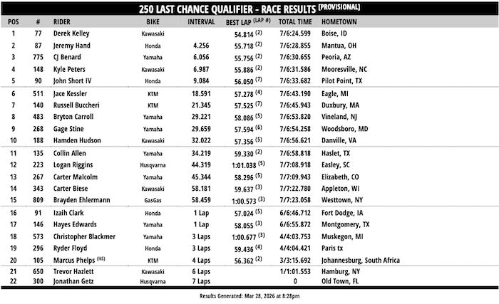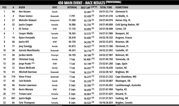 RESULTADOS: AMA SUPERCROSS –11ª Etapa – Detroit