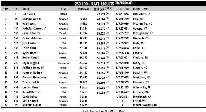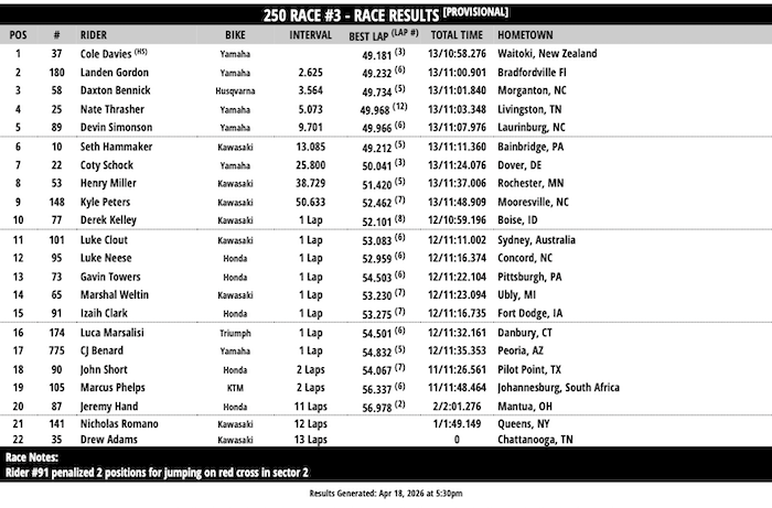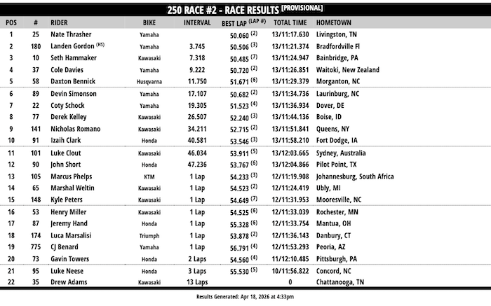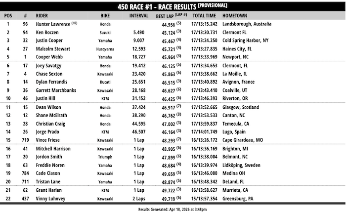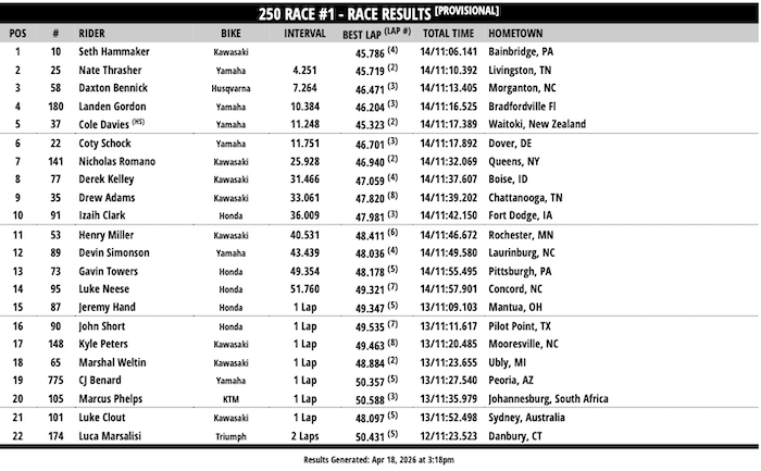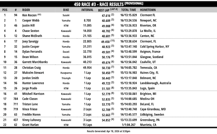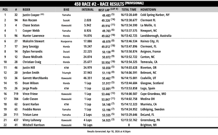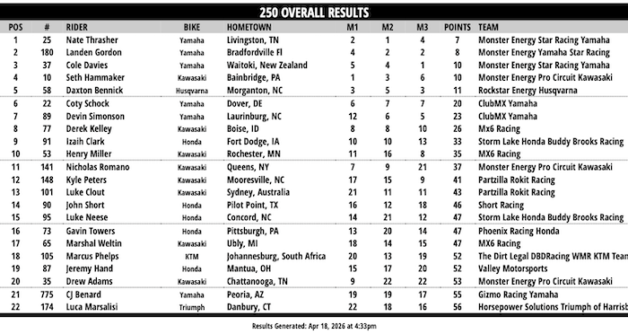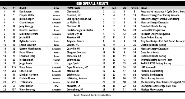 RESULTADOS: AMA SUPERCROSS – 14ª Etapa – Cleveland