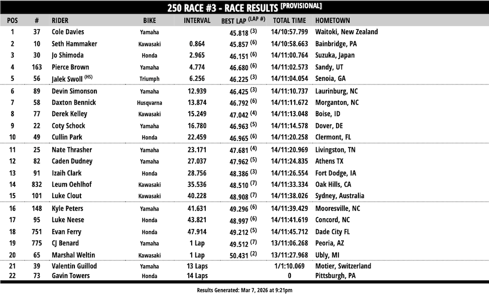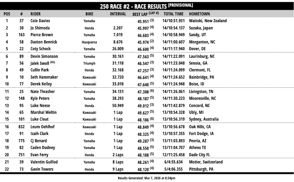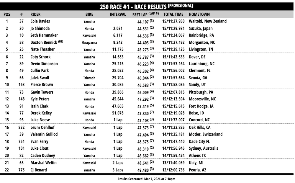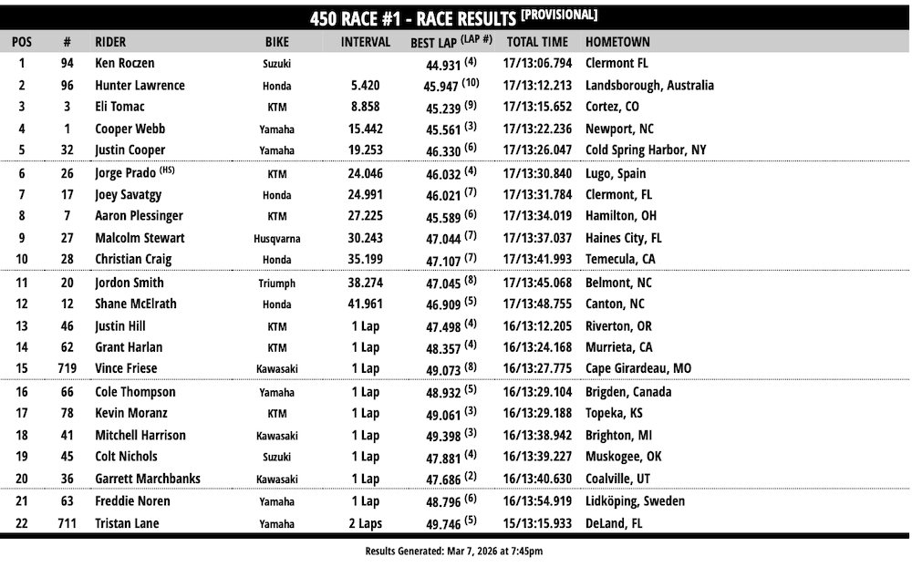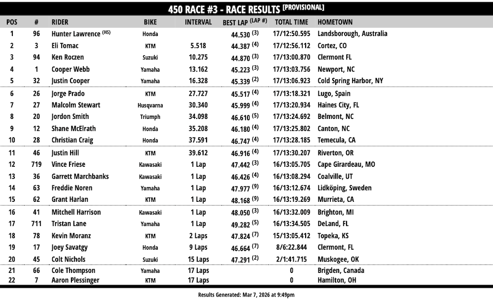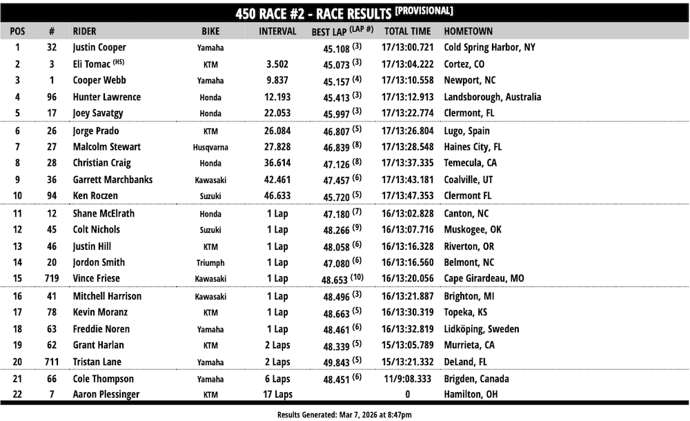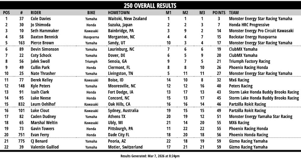 RESULTADOS: AMA SUPERCROSS – 9ª Etapa – Indianapolis