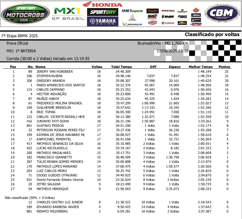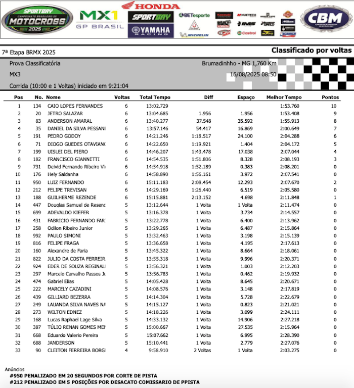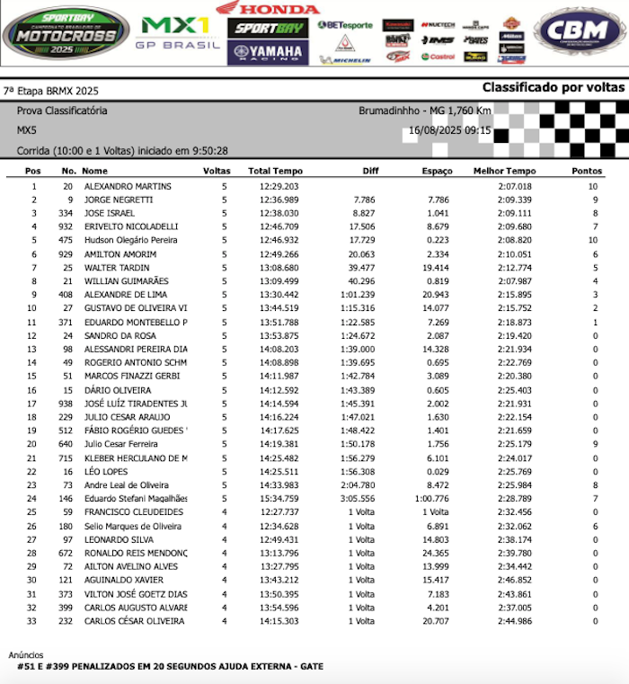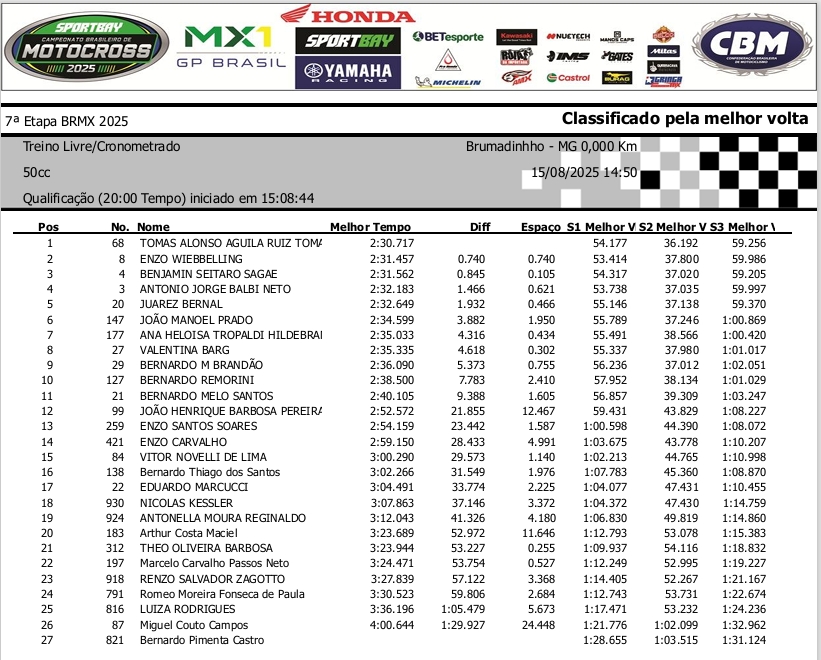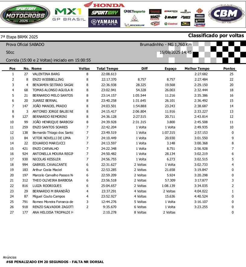 OS RESULTADOS SERÃO POSTADOS A PARTIR DAS 12:00 HORAS DE BRASÍLIA