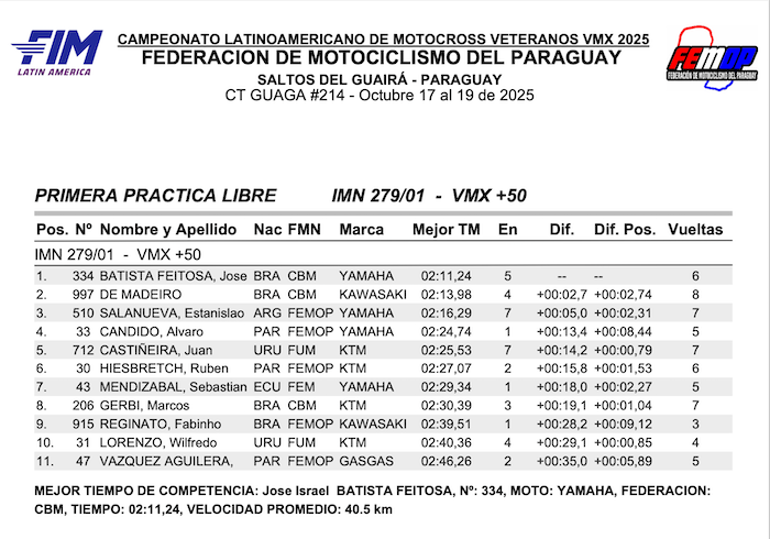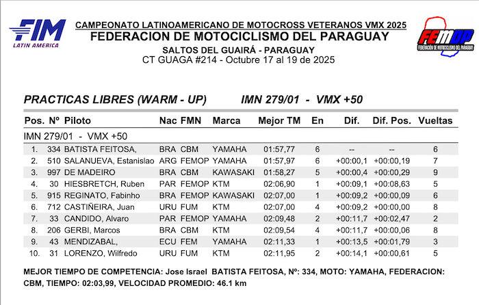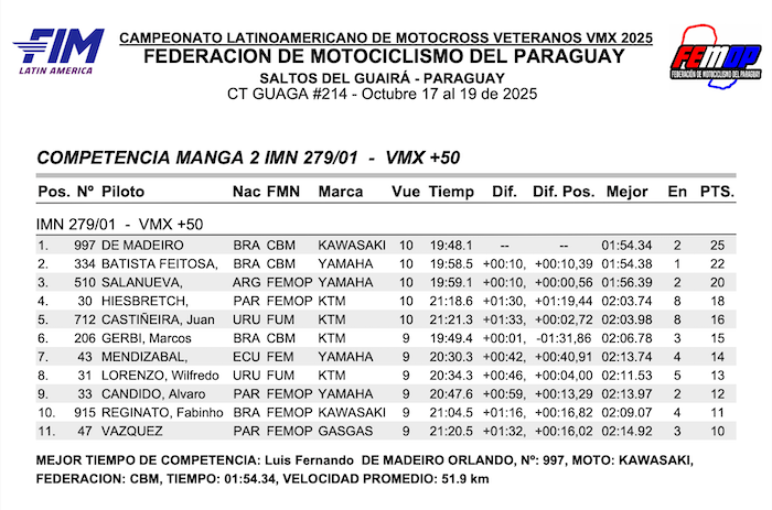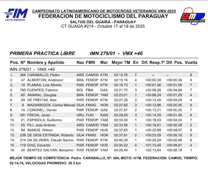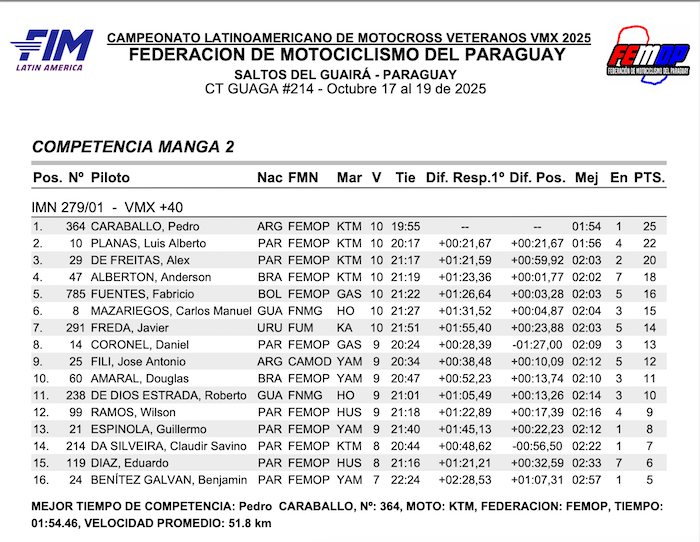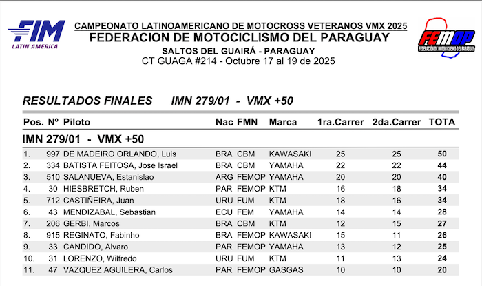 RESULTADOS: CAMPEONATO LATINO AMERICANO VMX – Salto del guaira, PY