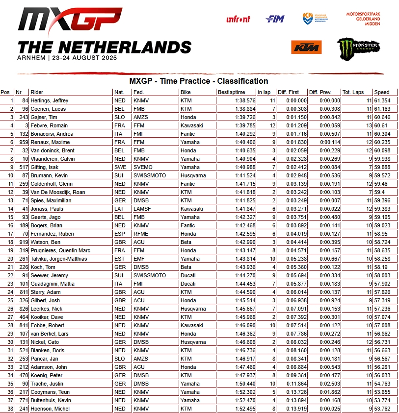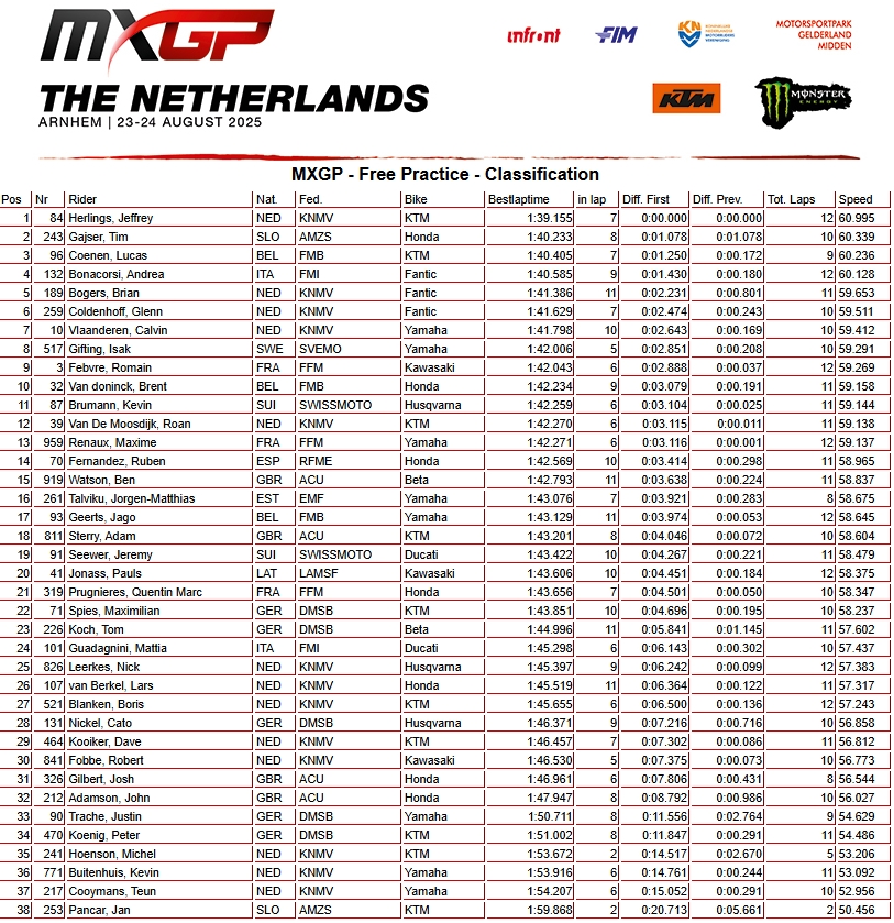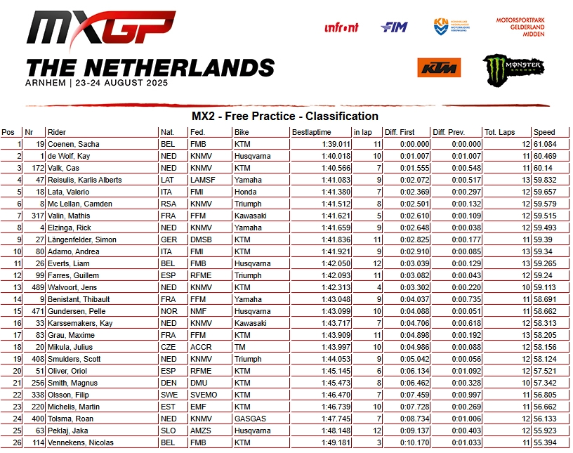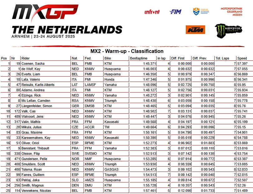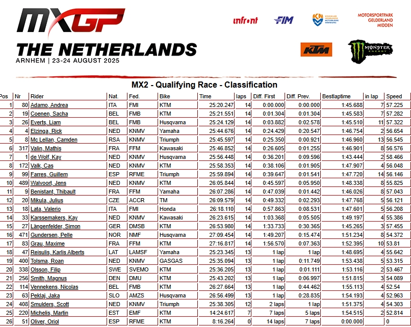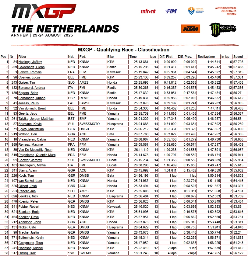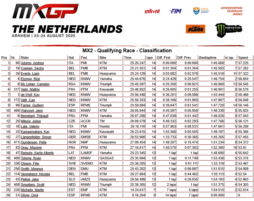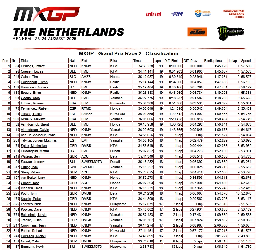 RESULTADOS: MUNDIAL DE MOTOCROSS – 17ª etapa – Holanda