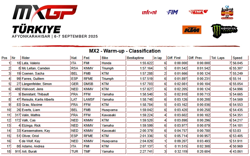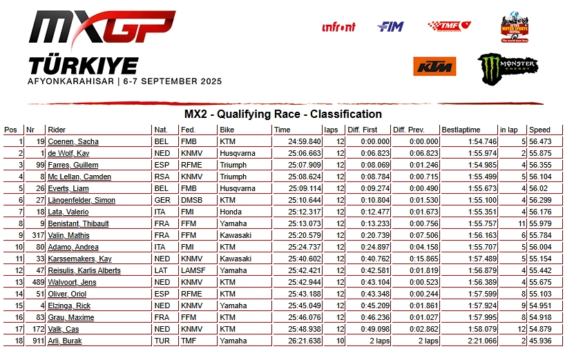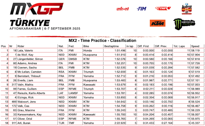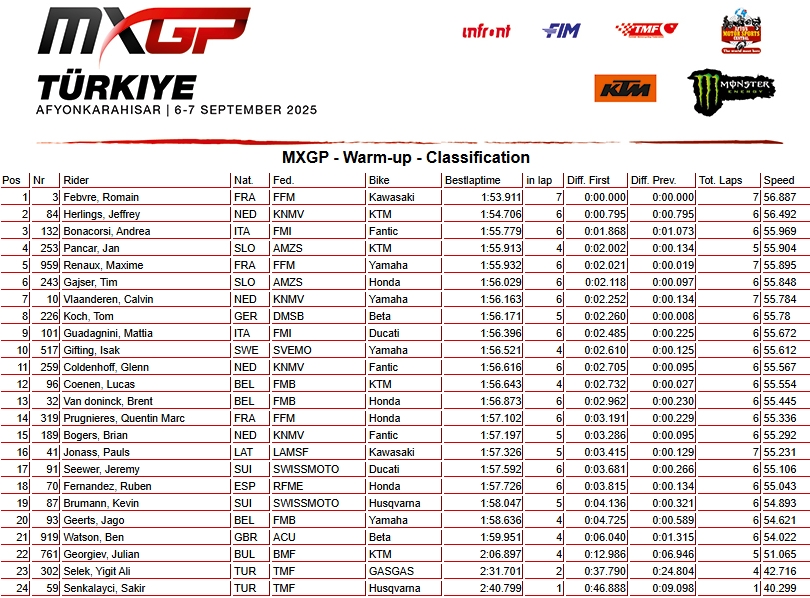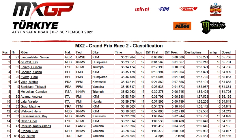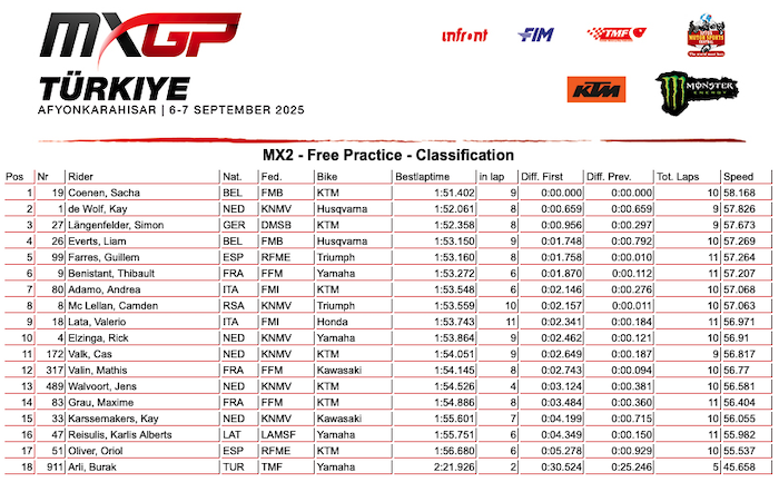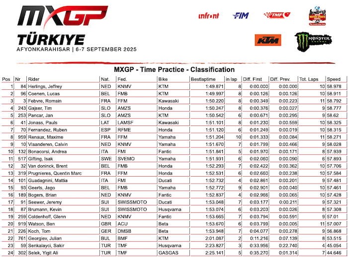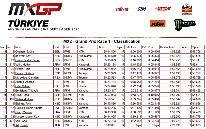 RESULTADOS: MUNDIAL DE MOTOCROSS – 18ª etapa – Turquia