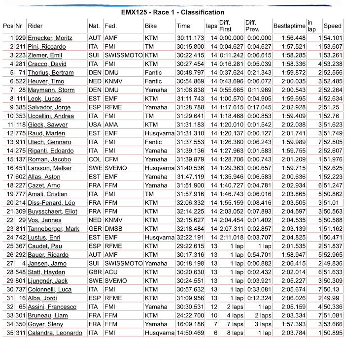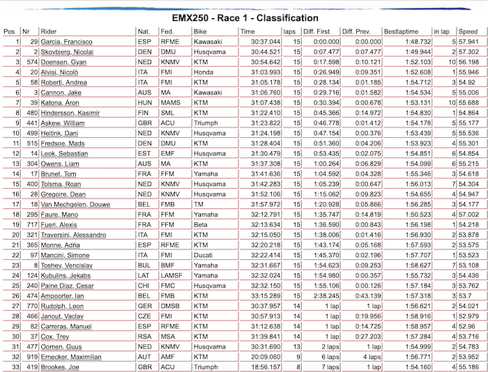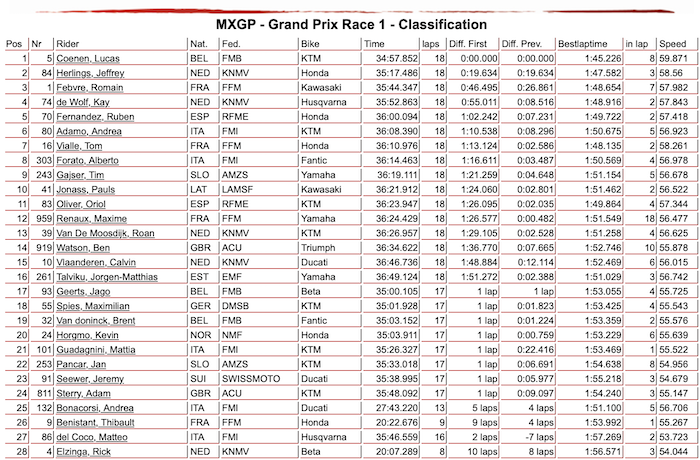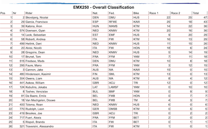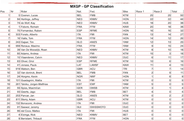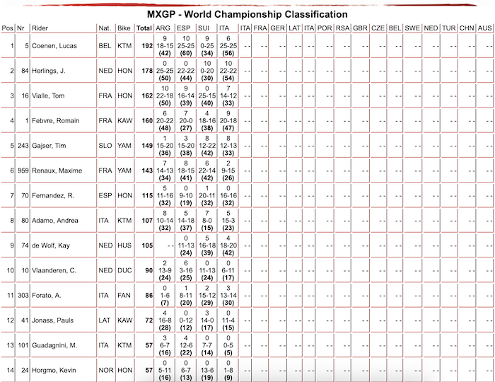 RESULTADOS: MUNDIAL DE MOTOCROSS – 4ª etapa – Itália
