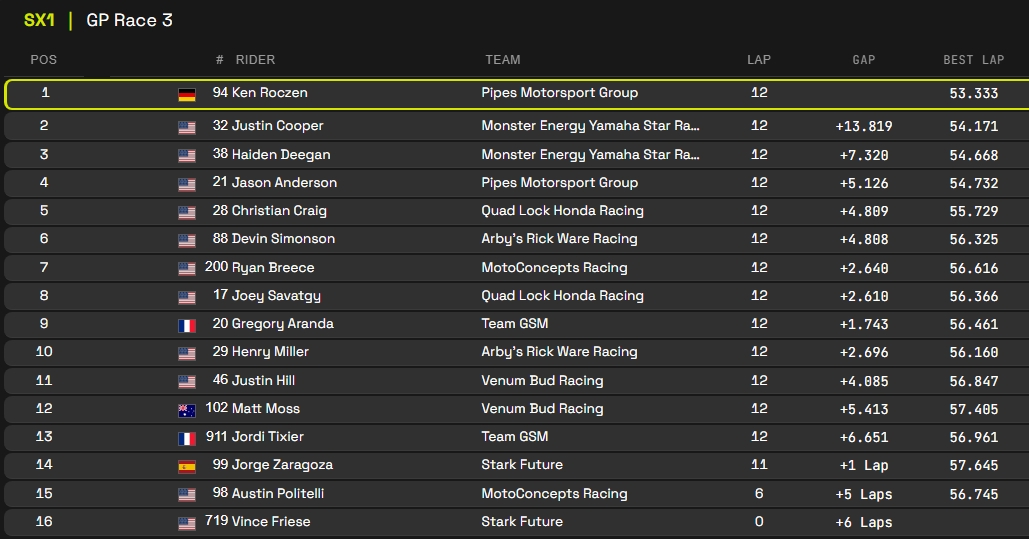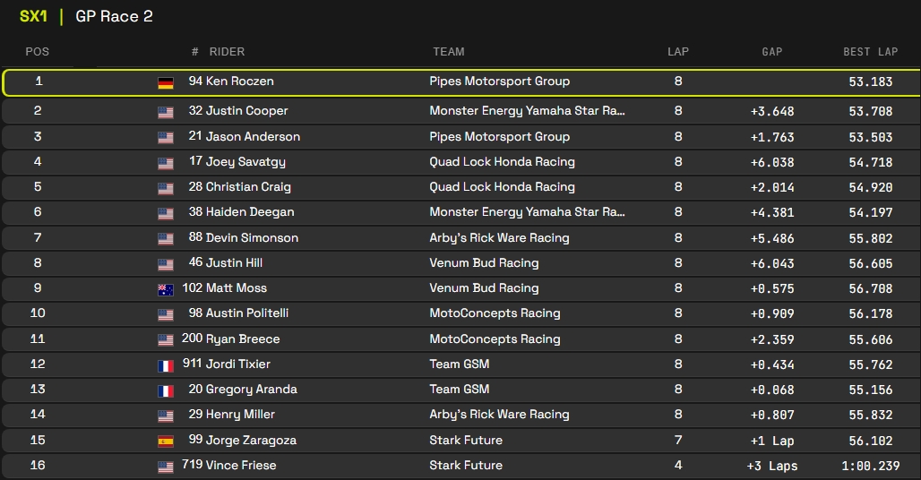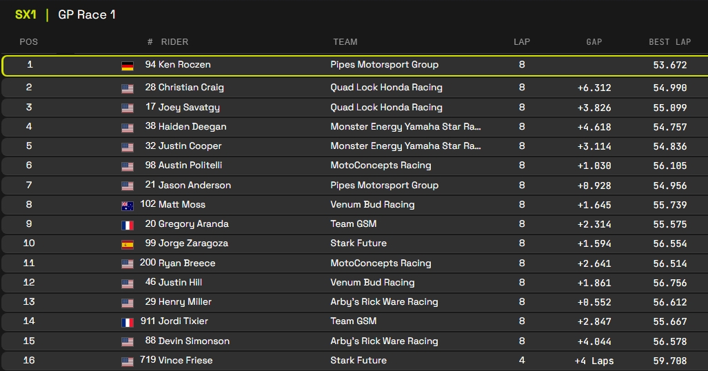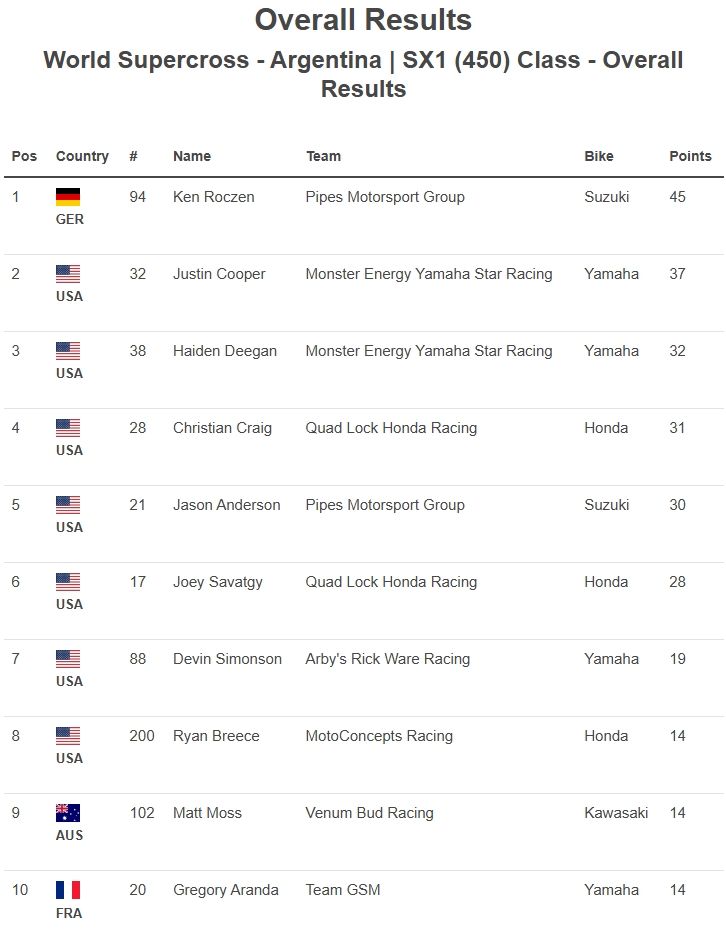 RESULTADOS: MUNDIAL DE SUPERCROSS – 1ª etapa – Argentina