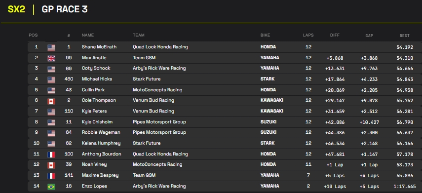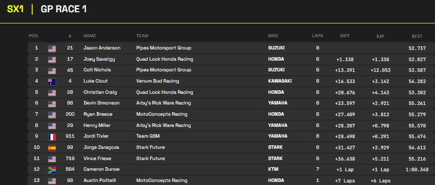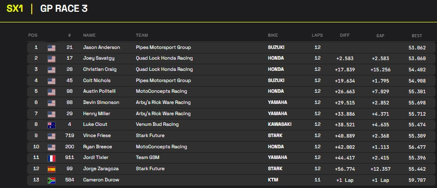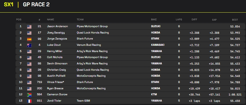 RESULTADOS: MUNDIAL DE SUPERCROSS – 5ª etapa – África do Sul