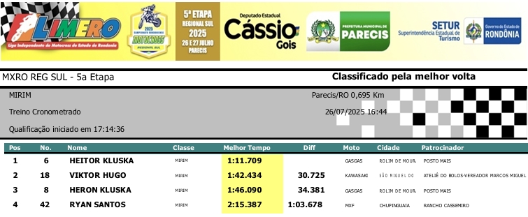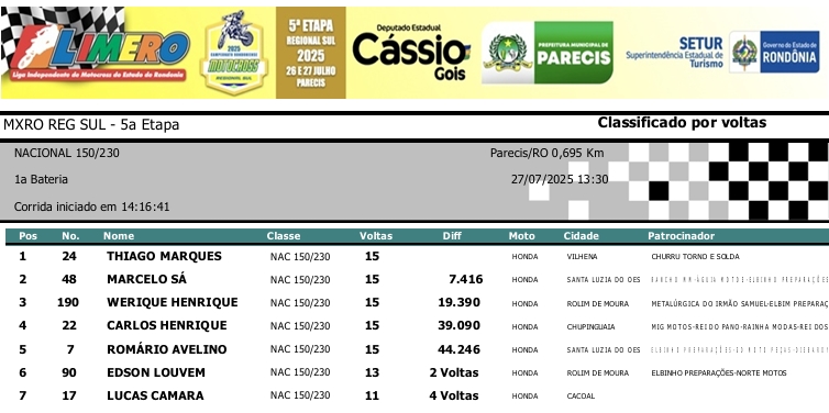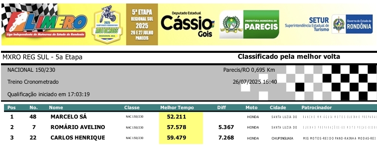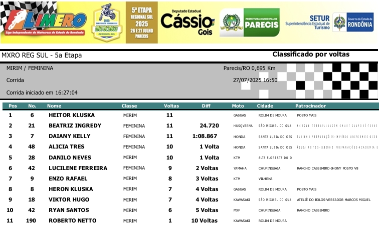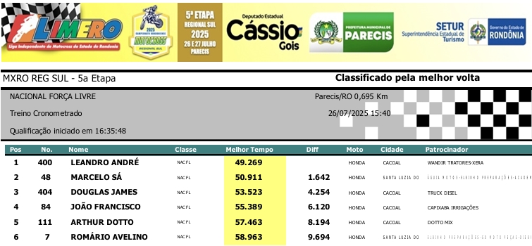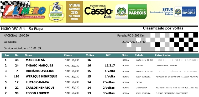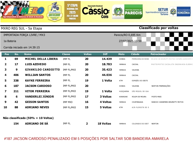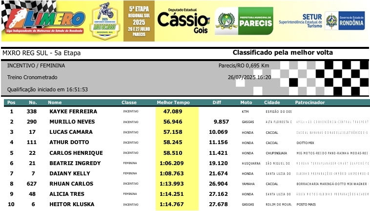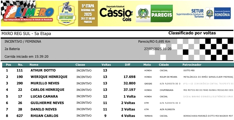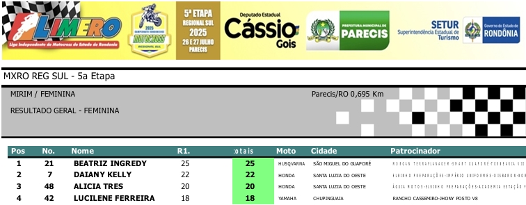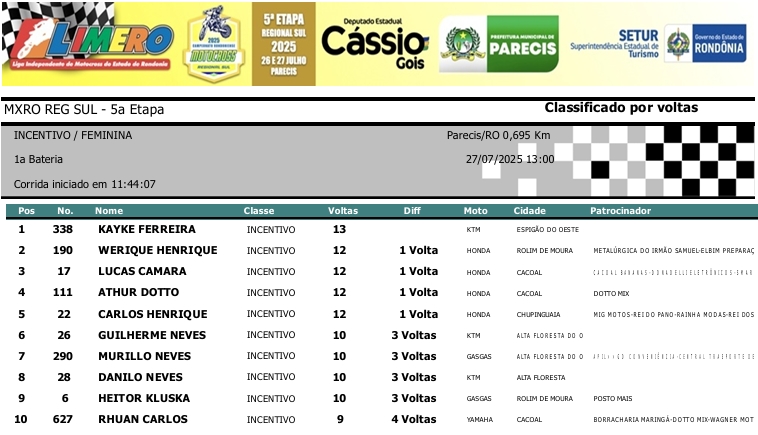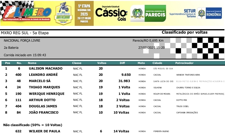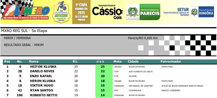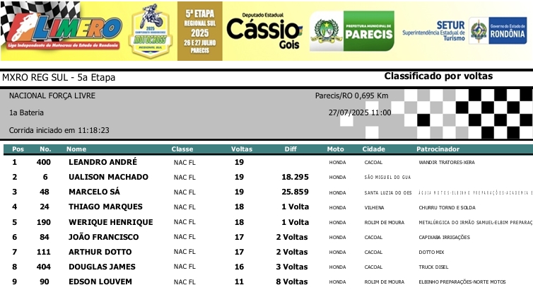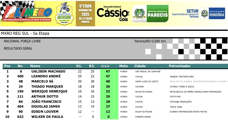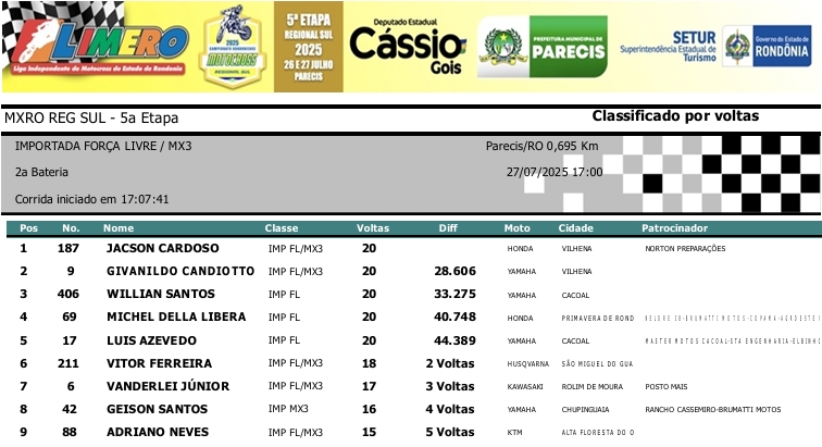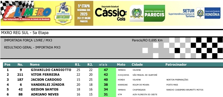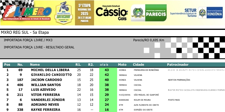 MOTOCROSS RESULTADOS: MX RONDÔNIA REGIONAL SUL – 5ª Etapa – Parecis 27/07/2025975 visualizações Foto: @vaiouracha35 LEIA MAIS: Jose Felipe busca o vice para a Pro Tork no Argentino de Motocross