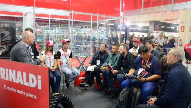 Rinaldi apresenta novos pneus em coletiva de imprensa no Salão das Motopeças