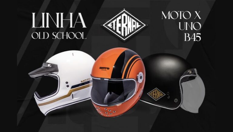 Linha Old School: para o pai que vive a nostalgia sob duas rodas, os capacetes da linha Old School são a escolha perfeita. Produzidos de forma artesanal que remete ao estilo vintage, possuem revestimento interno em suede e acabamento em tecido matelassê, que proporciona efeito “acolchoado”, trazendo mais conforto ao uso. Detalhes na costura em pesponto vermelho. Preços públicos sugeridos: Uno: R$899,90 / Moto X: R$899,90 / B45: R$799,90