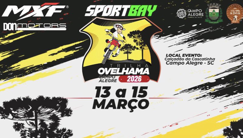 Consolidada no calendário nacional do off-road, o Sportbay Ovelhama cresce a cada ano e, em 2026, chega ainda mais forte. O evento será realizado como de costume no Calçadão da Cascatinha, em Campo Alegre (SC), e acontece junto à tradicional XXVI Festa Estadual da Ovelha, garantindo uma estrutura completa para participantes e público, com shows nacionais, festa agropecuária, exposição de animais, ampla praça de alimentação e diversas atrações paralelas. Reforçamos que as atrações são todas gratuitas.