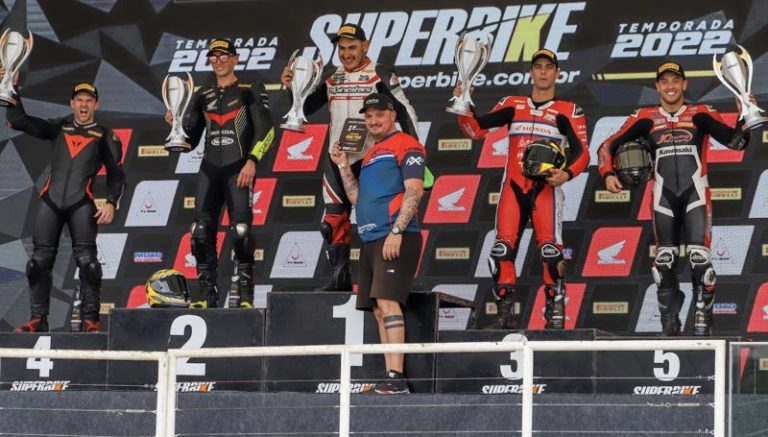 A sexta etapa do SuperBike Brasil 2022 foi marcada por disputas acirradas no Autódromo de Interlagos, em São Paulo (SP), neste domingo (28/8). Em busca do bicampeonato na categoria principal, o piloto Pedro Sampaio, apoiado pela Honda, manteve a liderança da SuperBike Pro após o segundo lugar na corrida, acelerando a CBR 1000RR-R Fireblade. João Carneiro segue com 100% de rendimento na Copa Pro Honda CBR 650R, enquanto Léo Marques venceu a prova da Honda Jr Cup e também ampliou vantagem na ponta da tabela.