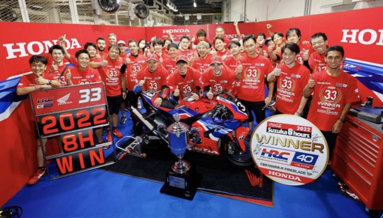 O Team HRC venceu neste domingo (7/8) as 8 Horas de Suzuka 2022, confirmando a 28ª vitória da Honda na tradicional prova de resistência – a primeira após oito anos. Com a motocicleta CBR 1000RR-R Fireblade SP, a equipe foi formada pelos pilotos japoneses Tetsuta Nagashima e Takumi Takahashi e pelo espanhol Iker Lecuona. A corrida de revezamento de oito horas é realizada desde 1978 na cidade de Suzuka, no Japão.