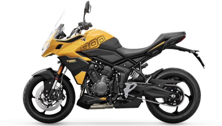 A Tiger Sport 800 chega ao Brasil em 2025, disponível nas 38 concessionárias da Triumph.Os clientes poderão escolher entre duas cores atraentes: Sapphire Black ou a opção premium Cosmic Yellow, ambas com elementos contrastantes de Sapphire Black.