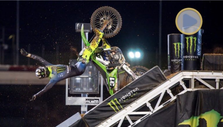 No Atlanta Supercross, o piloto da Monster Energy / Pro Circuit / Kawasaki Cameron McAdoo sofreu um espantoso acidente. As imagens mostram a intensidade com que McAdoo foi lançado ao ar preso em sua moto.