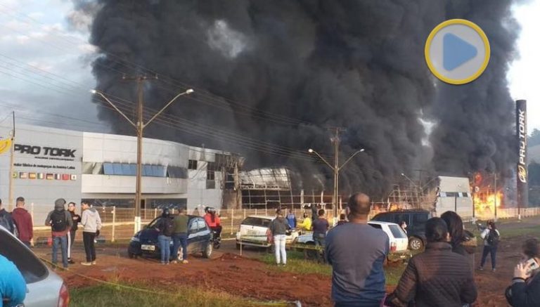 VÍDEO: Fogo destrói instalações da Pró Tork em Siqueira Campos/PR