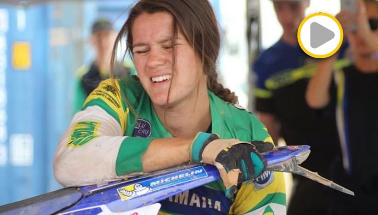 Fique com um vídeo onde a australiana está trocando os pneus da sua moto após a conclusão do dia de competição, com o dedo quebrado.