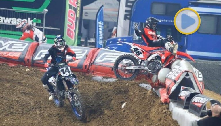 Durante a primeira das três Finais do Supercross de Paris, Justin Hill seguia na liderança mas era fortemente pressionado por Dylan Ferrandis. O francês queria abrir a noite com uma vitória frente ao seu público e não fez “cerimônia” com o norte-americano.