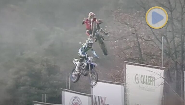 O piloto da Honda esteve hoje na Itália disputando a segunda rodada do Internazionali d’Italia de Motocross, umas das provas mais importantes da pré-temporada. O pé de Tim Gajser escorregou da pedaleira na subida da rampa e o esloveno teve uma queda assustadora.