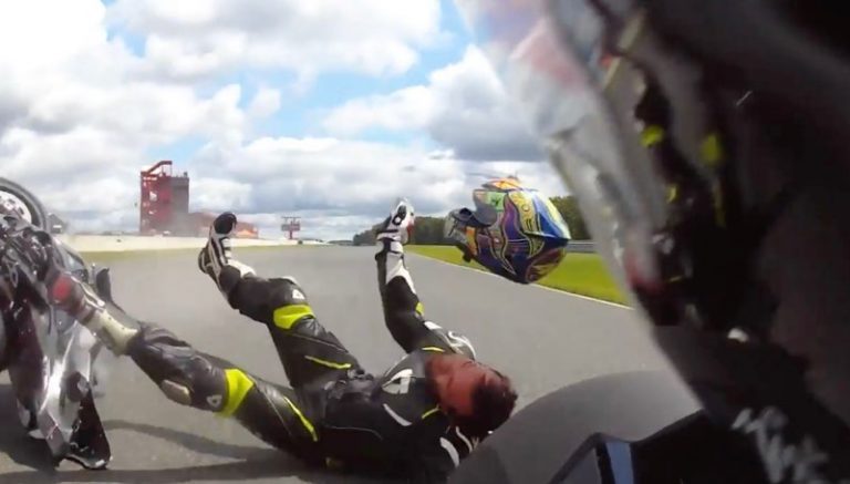 Chega de Nova Jérsia um impressionante acidente de moto que podia ter acabado bem pior. Aconteceu no domingo durante uma corrida do campeonato ASRA de Superstock, envolvendo Luiz Franchi e Jeremy Whitehurst.
