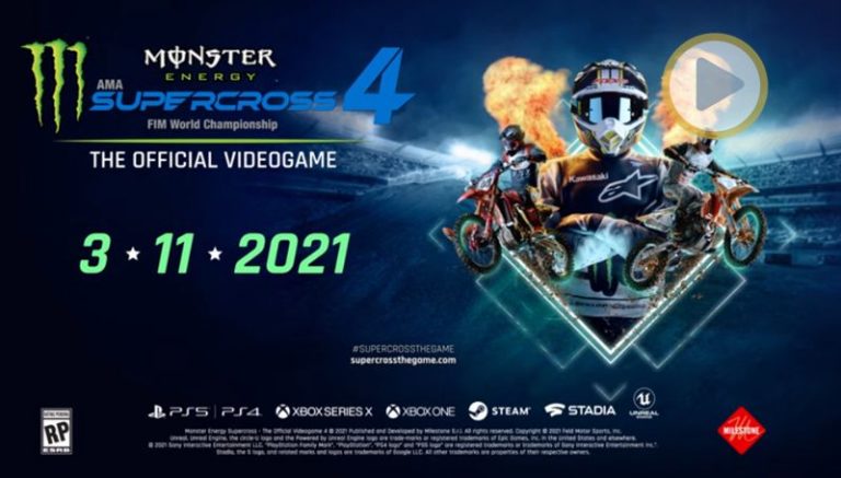 SUPERCROSS VÍDEO: Trailer de lançamento do game Monster Energy Supercross 4 24/11/20201369 visualizações A nova versão do game Monster Energy Supercross 4 será lançada no dia 11 de março de 2021. LEIA MAIS: VÍDEO: O tombo violento de Justin Bogle no Monster Energy Cup