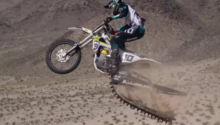 Já tínhamos visto este mesmo piloto (Colton Haaker) com esta mesma moto a destruir os trilhos da neve, mas nas dunas de areia é uma novidade, uma verdadeira loucura.