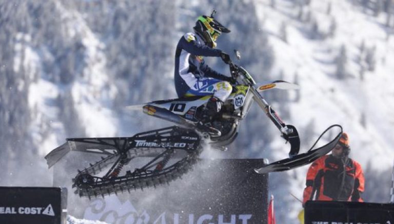 Brock Hoyer ganhou a corrida inaugural de BikeCross na neve durante o X Games de Aspen.