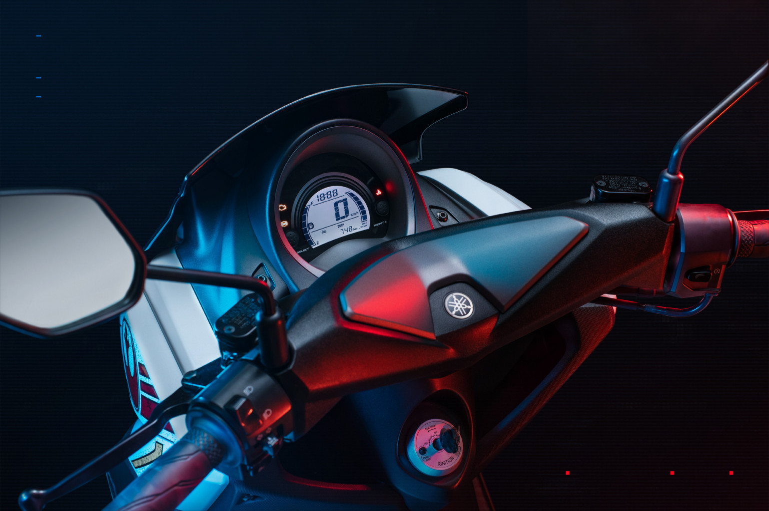 Painel de instrumentos – Além de um design arrojado e moderno, o painel de instrumentos do NMAX 160 ABS, em LCD totalmente digital, é de fácil leitura. Nele, a retro iluminação em LED permite que a assimilação das informações mostradas seja mais fácil de serem lidas também durante a noite. Seu acabamento especial da lente – que elimina reflexos – melhora a visibilidade.