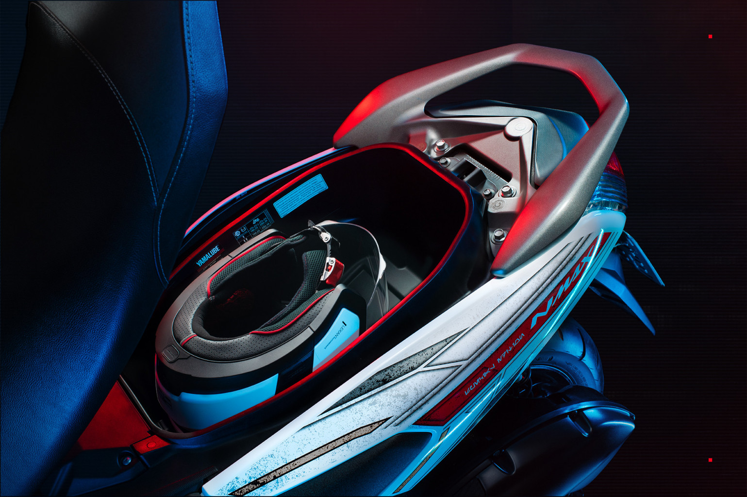 Conforto – Dentre as premissas do projeto do NMAX 160 ABS, está a de oferecer conforto premium, tanto para o piloto quanto para o garupa. Seu desenho oferece amplo espaço para os pés e para esticar as pernas. Esse layout espaçoso permite que o piloto adote diferente posições de pilotagem, podendo optar entre um posicionamento mais confortável ou esportiva. Para o garupa, o assento duplo traseiro é ligeiramente mais elevado em relação ao piloto, proporcionando além de melhor acomodação para as pernas, uma maior visibilidade.