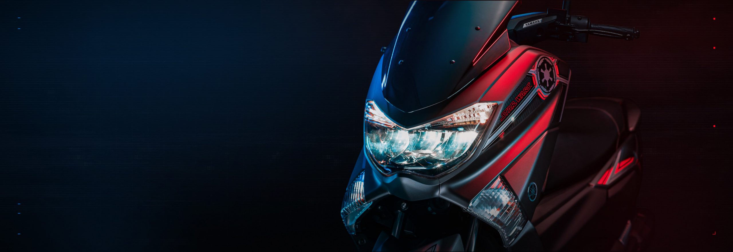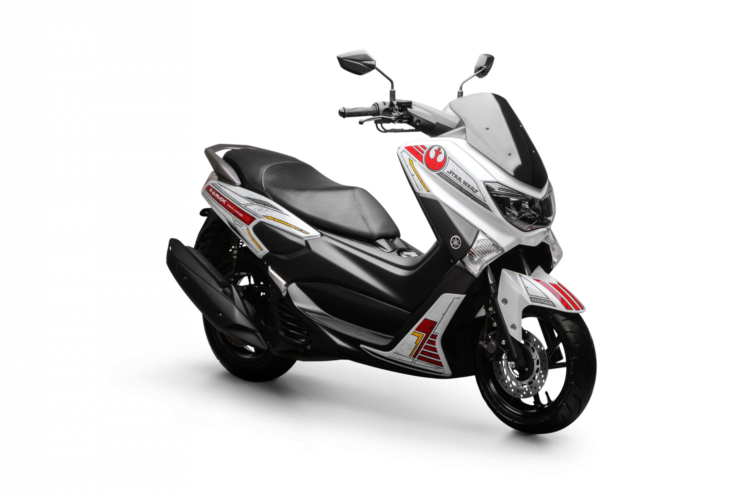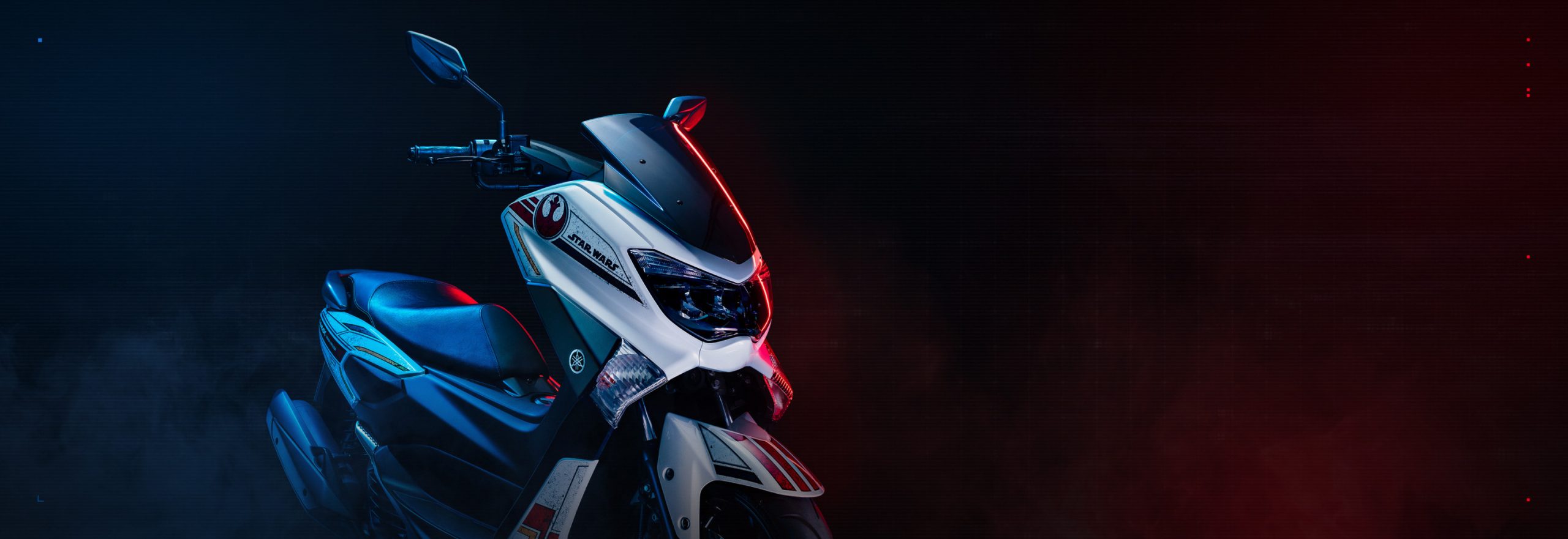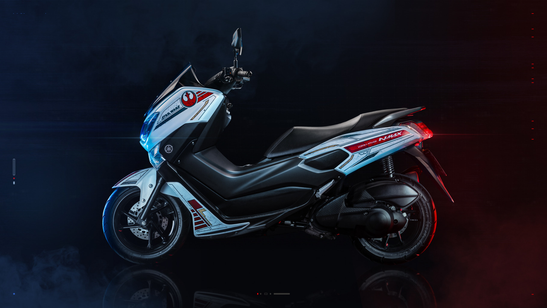 O NMAX IMPÉRIO GALÁCTICO, na cor preta, foi inspirado no TIE-Fighter, um símbolo inconfundível do Império. Já o NMAX ALIANÇA REBELDE, na cor branca, traz intencionalmente gráficos com aspecto de leve desgaste, lembrando as avarias típicas das naves de Star Wars, e foi inspirado nas linhas do X-Wing Starfighter de Luke Skywalker. As linhas das naves podem ser percebidas no design moderno e agressivo do NMAX, assim como sua potência e leveza que trazem a agilidade de uma viagem ao hiperespaço direto para as ruas da cidade