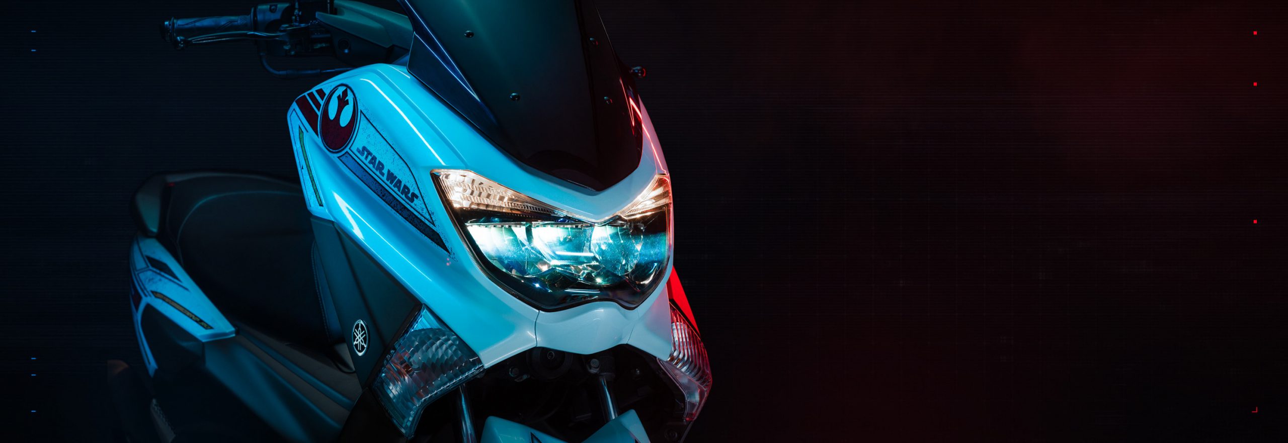 O despertar de uma nova galáxia surge com o lançamento da Yamaha inspirado em mais uma franquia Disney. Os fãs brasileiros da saga Star Wars, uma das franquias de ficção científica mais emblemática do cinema, poderão adquirir a Edição Especial Yamaha NMAX Star Wars. Até mesmo aqueles que nunca pensaram em entrar para o empolgante mundo das duas rodas ficarão tenta-dos a conhecer os scooters NMAX ALIANÇA REBELDE e NMAX IMPÉRIO GALÁCTICO.