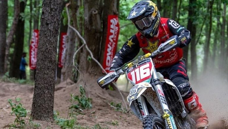 O piloto da Husqvarna não se deu bem na largada – no GNCC, a largada é dada com as motos desligadas – e saiu na última posição do primeiro lote de 12 pilotos.